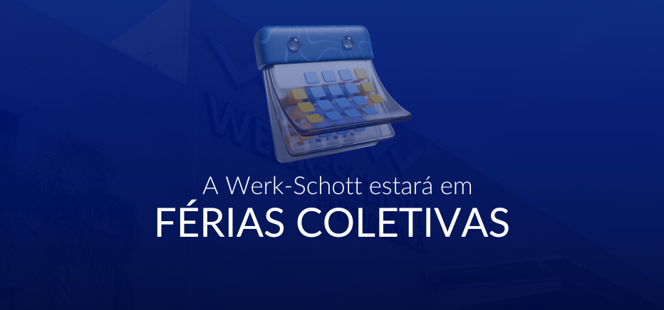 Informamos que nossas duas unidades, Werk-Schott Mirassol e Werk-Schott Novo Hamburgo, estarão em férias coletivas entre os dias 19/12/2024 e 05/01/2025. Com retorno em horário normal no dia 06/01/2025.