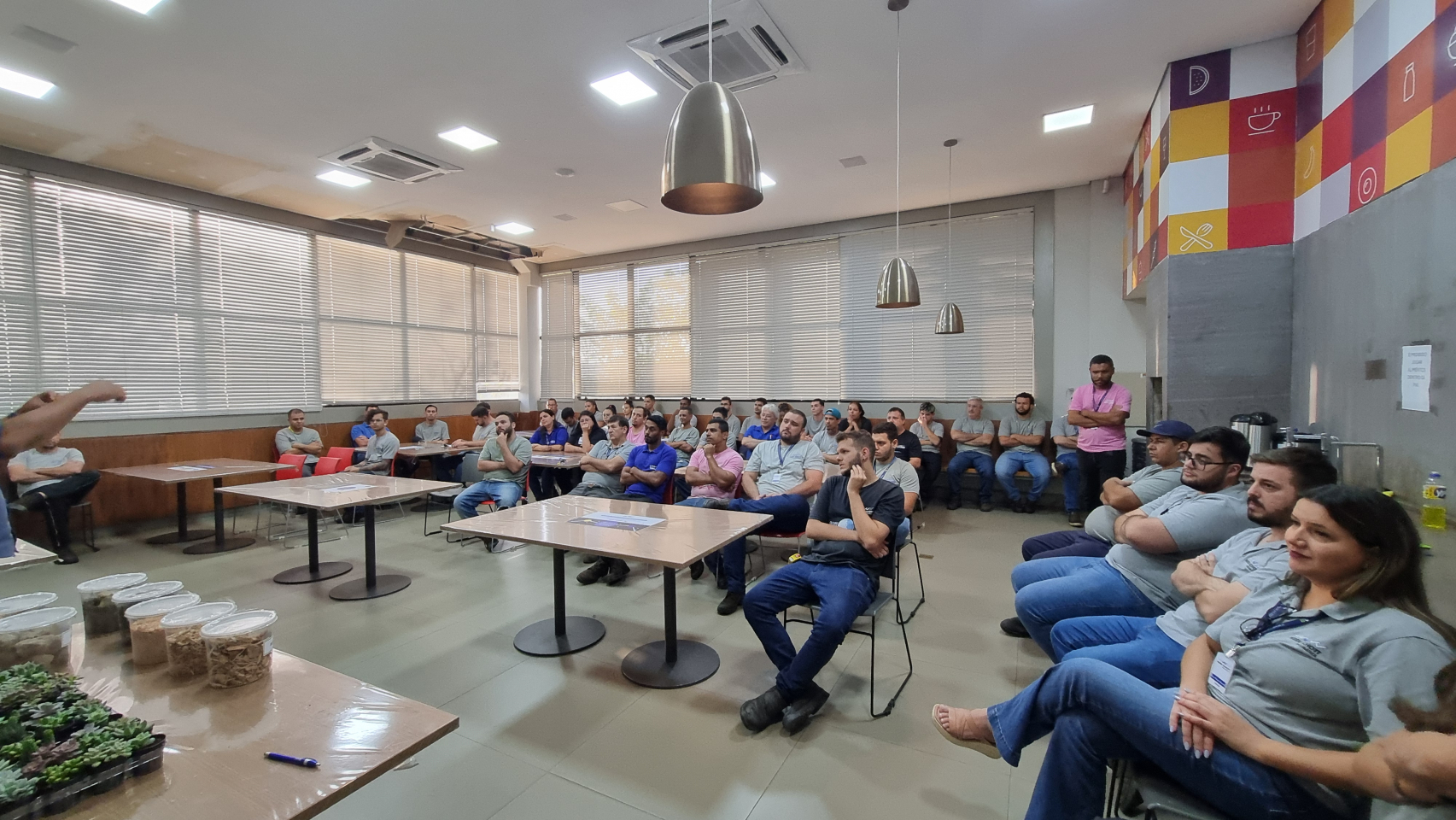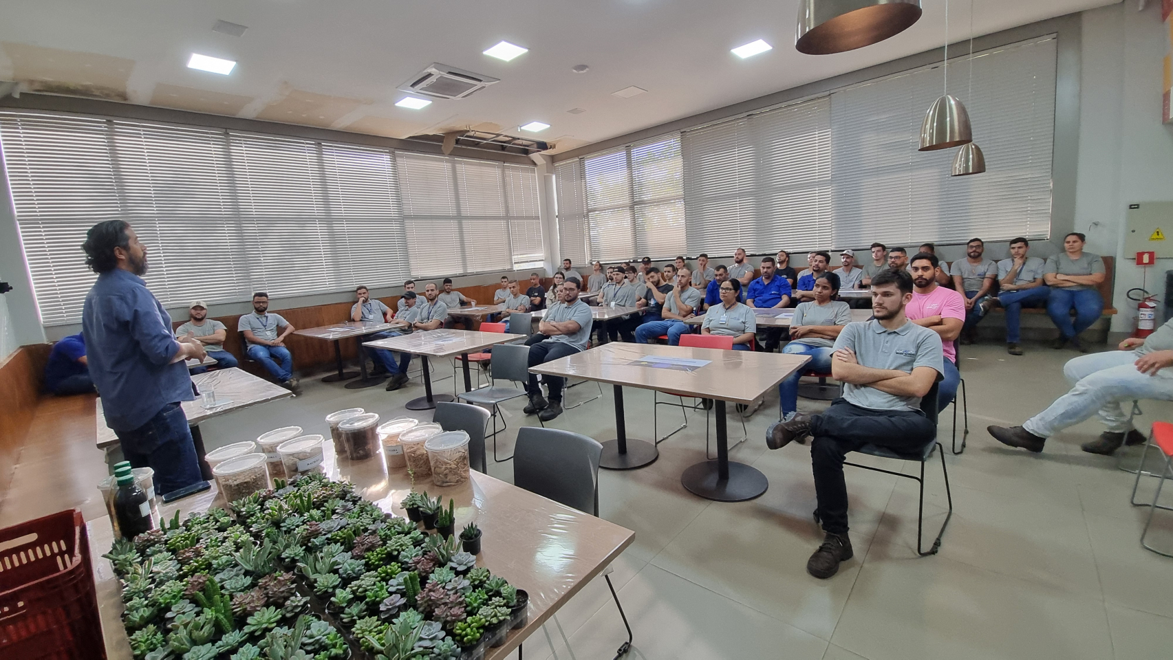 Os colaboradores da unidade de Mirassol participaram de palestra sobre o acondicionamento e destinação de resíduos, com Luis Fernando Fugii, da empresa Mejan Ambiental. Na ocasião, o palestrante elencou os meios que a Mejan utiliza para assegurar que os resíduos e descartes das indústrias não impactem negativamente o meio ambiente. Ao final, todos os participantes receberam um mini vaso com planta como forma de incentivo ao cultivo e preservação do meio ambiente.