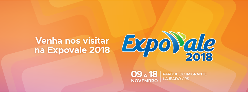 Venha visitar o nosso stand e conhecer como novidades da linha de produtos na EXPOVALE 2018). A feira acontece de 09 a18 de Novembro de 2018 no Parque do Imigrante, em Lajeado/RS. Estaremos sobre estande P2-31. Mais informações em www.expovale.org.br. Esperamos pela sua visita!