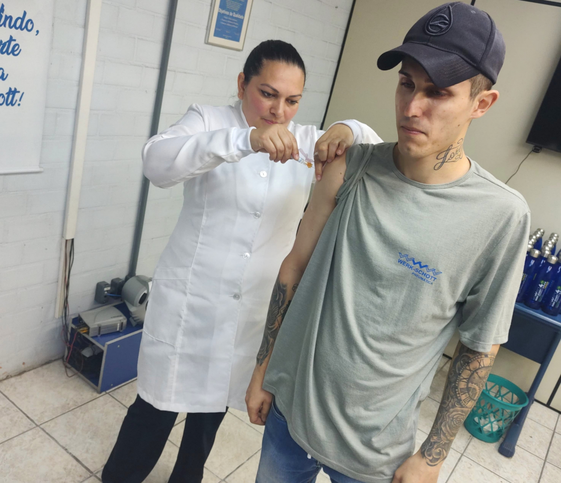 Nos dias 17 e 18 de junho de 2024, os colaboradores da Werk-Schott receberam vacinação contra a gripe nas unidades de Mirassol e Novo Hamburgo. A vacina garante prevenção contra a gripe e suas complicações. A ação reforça o nosso compromisso com a saúde e o bem estar de todos, em especial, dos nossos colaboradores.