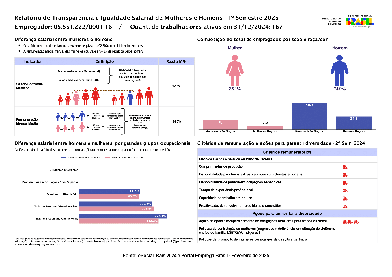 O Relatório de Transparência Salarial está disponível para consulta e traz dados importantes sobre nossa política de remuneração, reforçando nosso compromisso com a transparência e a igualdade de oportunidades.