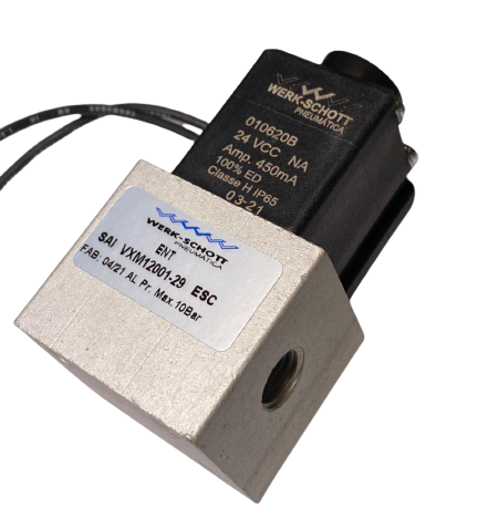 É uma Válvula Direcional de 3/2 Vias NA de Ação Direta, Acionada Eletricamente por Solenoide de 24 Vcc, Bitola de Rosca M12 x 1,5. Operam com Ar Comprimido Filtrado e Lubrificado, com Pressões de 0,1 à 10 Bar e Temperaturas de -10 ⁰C à +80 ⁰C. Desenvolvida originalmente para utilização na Linha Rodoviária, estas válvulas são usadas para acionamentos e controle de sistemas pneumáticos que necessitem de uma válvula "Normalmente Aberta "confiável que trabalhe com até 10 bar de pressão positiva. Tem como características, a Robustez, Durabilidade, Fácil Instalação e Manutenção e ainda um Excelente Custo Benefício, podendo ser utilizada também, nas mais diversas aplicações de Automações em Maquinas e Equipamentos Industriais.