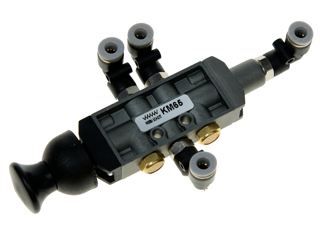 São Válvulas com bitola de 1/8 BSP, de 3/2 , 5/2 e 5/3 vias, de acionamento Muscular – Manual por Botão, com opção de cor do botão e canopla, que operam com Pressão até 10 Bar e Temperatura de -10 ⁰C à +80 ⁰C. Executam comandos para várias operações nos Ônibus, como, Abertura, Fechamento, Travamento e Emergência de portas, Trava de Bagageiros, Sistemas Sanitários, Liberação externa da porta dianteira, etc. Na linha de Caminhões, operam na Tomada de Força, Trava de Segurança do 3º Eixo, etc. Pela diversidade de aplicações, equipam Ônibus e Implementos Rodoviários das grandes encarroçadoras nacionais.