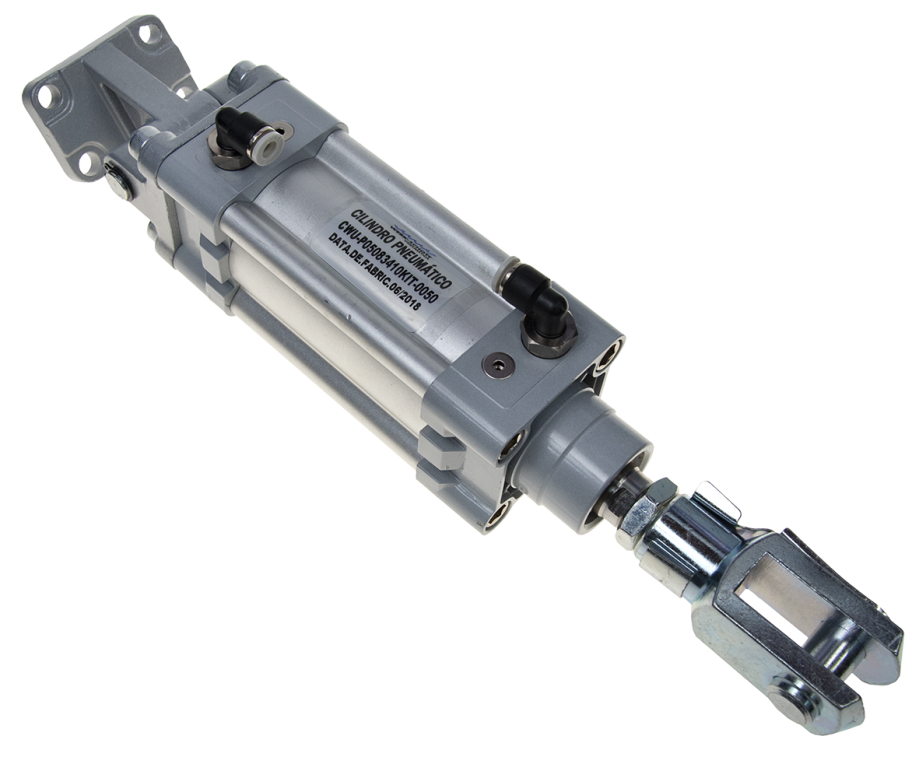 Cilindro montado com acessórios, destinado a equipar veículos da Linha Rodoviária, com a finalidade de Garantir o Travamento do 3º eixo. O cilindro é fundamental para garantir as operações de carregamento e descarregamento do implemento, permitindo a estabilidade e apoio do 3º eixo em solo, evitando a sobrecarga e elevação da frente do veículo. Desenvolvido para a função específica para a Linha Rodoviária, é um cilindro normalizado ISO Ø50 X 50mm, equipado com acessórios de fixação traseira – Articulações Traseira Macho / Fêmea, fixação dianteira – Ponteira Garfo, além de Sanfona de Proteção e Conexões Instantâneas.