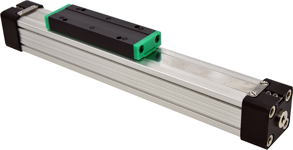 São cilindros de montagem especial, construídos sem haste e utilizados em instalações com espaços limitados, permitem longos cursos em comprimentos reduzidos. Acionados por ar comprimido, deslocando o êmbolo interno que atrelado ao carro externo, por uma fita, permitem os movimentos; que devem ser guiados externamente, sempre que necessário. Concebidos em alumínio, vedações em NBR ou viton e plásticos de engenharia, trabalham com pressões de 0,5 à 8 bar e temperaturas de -10 ⁰C à +80 ⁰C. Dispoem de conexões em tres posições nos cabeçotes com roscas M5, 1/8” e 1/4" BSP, conforme as diâmetros Ø16,Ø25, Ø32, Ø40 e Ø50 mm e são equipados com êmbolos magnéticos, permitindo a utilização de sensores ao longo do curso, além de diversos acessórios para fixação. Com as características de redução de espaço, alta velocidade e longas Distâncias, podem ser instalados em qualquer posição, observando a fixação, o alinhamento e a distribuição das cargas, para melhor eficiência do conjunto mecânico, solucionam as mais variadas aplicações em máquinas e equipamentos industriais.