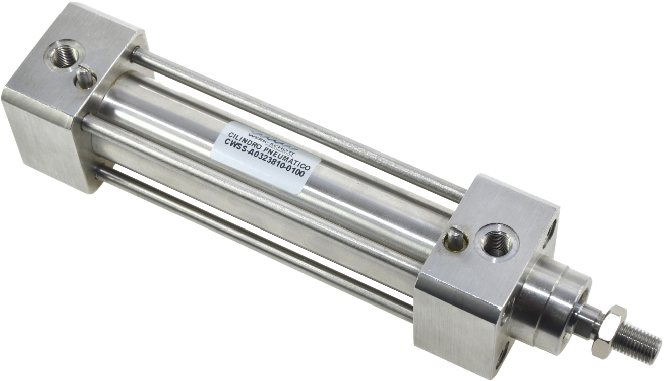 São cilindros especiais, confeccionados em aço inox AISI 304 e sob a norma ISO 15552, com bitolas Ø32, Ø40, Ø50, Ø63, Ø80 e Ø100 mm, na versão: dupla ação diferencial com êmbolos magnéticos e amortecimento. Operam com pressões até 10 Bar e temperaturas de -20 ⁰C à +80 ⁰C com vedações em PU. São complementados com uma linha de acessórios, também em Inox, nos modelos: cantoneiras, flanges dianteira e traseira, articulações traseiras fêmea e macho, munhão central e suporte para articulação traseira fêmea, podendo ainda receber sanfonas de proteção. Utilizados em ambientes insalubres, hostis à umidade, atmosferas salinas e a alguns agentes químicos, como na indústria alimentícia, bebidas, laticínios, farmacêutica, química, fertilizantes, equipamentos marítimos, etc.