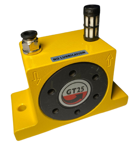 O vibrador pneumático é um instrumento que utiliza o ar comprimido para promover a vibração ou a movimentação de produtos. A intensidade da vibração pode ser ajustada com base na pressão do ar, pode iniciar imediatamente e parar rápido. Possui baixo nível de ruído e não necessita lubrificação (funcionamento isento de óleo).