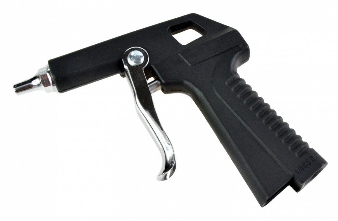 É um Equipamento de Sopro, muito utilizado no ambiente fabril, pois através do jato de ar liberado se efetuam Limpezas gerais. Seu uso deve ser Muito Criterioso, e vai de encontro a Segurança no Trabalho, pois Dispersam as Partículas no ambiente, podem Causar Acidentes quando utilizadas na Limpeza Corporal, além de ser a Vilã no consumo de Ar Comprimido. Fabricado em corpo de Plástico Técnico e acessórios em Aço Zincado, está disponível na Bitola de rosca de 1/4" BSP; é Resistente, Durável e tem Ótimo Acabamento. É aconselhável utilizar em consórcio com um Regulador de Pressão, para operar com Pressão Reduzida, Economizando Ar e Tubulação Espiral, Racionalizando o lay out da instalação. A Liberação e Controle do fluxo de ar é feito através do Gatilho, que tem com o conjunto, Excelente Ergonomia.