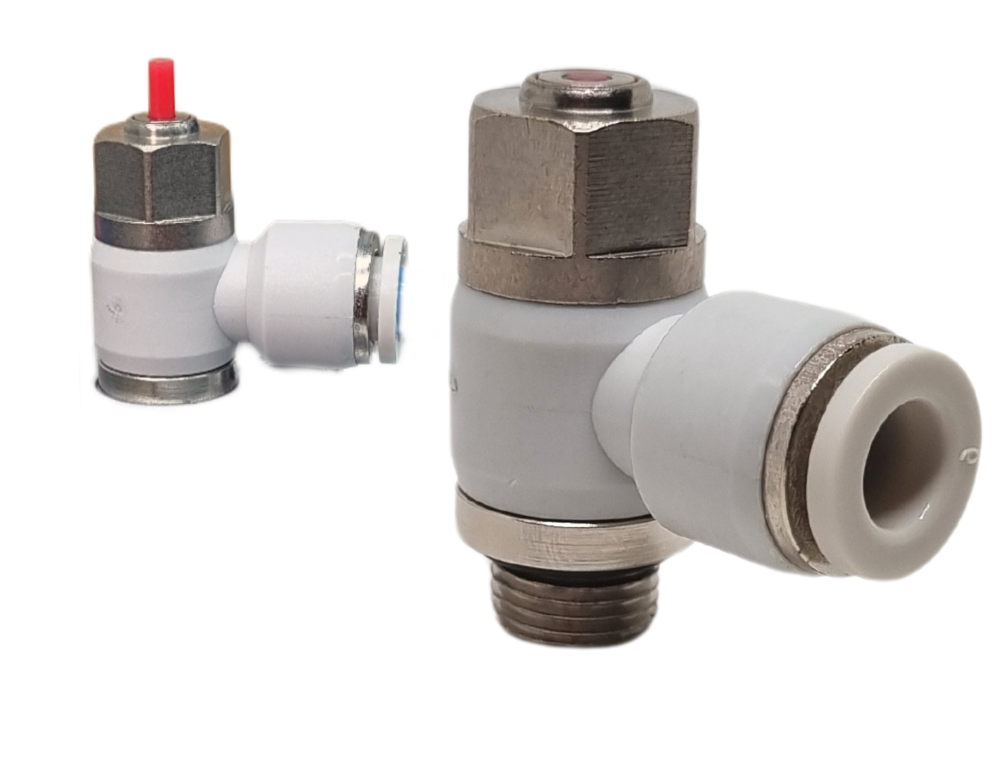 Conexão L giratória com indicador de pressão, projetada para monitorar de forma eficiente a presença de pressão de ar na passagem. Compacta e de fácil instalação, esta conexão requer pouco espaço, sendo ideal para ambientes com limitações de espaço. O indicador de pressão oferece uma leitura clara e imediata, garantindo maior controle sobre o sistema de ar comprimido. Sua instalação simples e design funcional a tornam uma escolha prática e eficiente para diversas aplicações industriais.