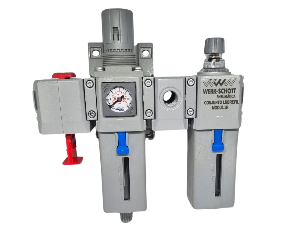 Dispositivo indispensável para o correto funcionamento dos equipamentos pneumáticos e aumento da vida útil de seus componentes. O conjunto modular de preparação de ar comprimido mini, filtra, regula a pressão e lubrifica o ar comprimido, funções básicas para garantir uma excelente preparação do ar comprimido antes da sua utilização nos equipamentos pneumáticos. Seu sistema montagem modular, permite a associação de modularidade a versatilidade, resultando em um sistema altamente configurável.