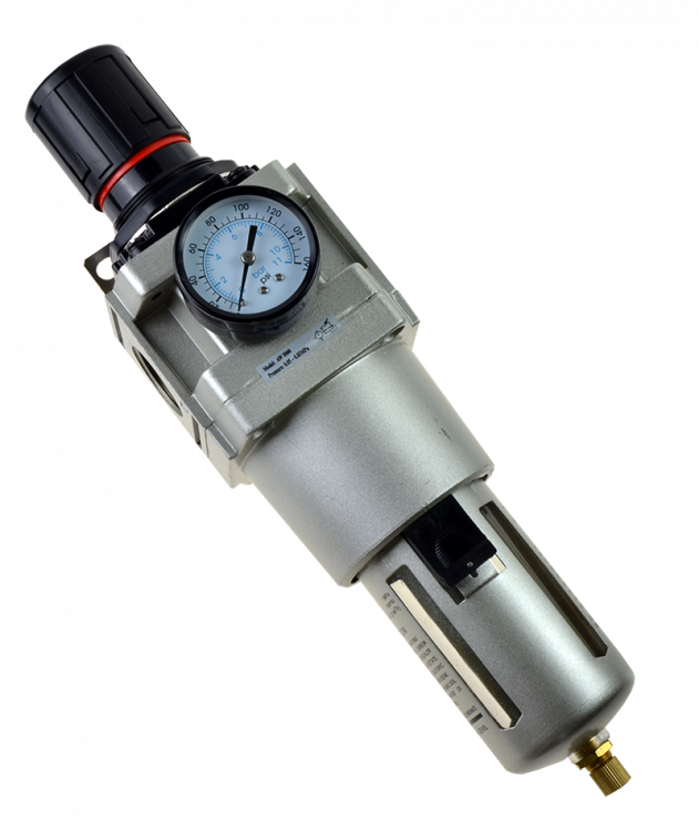 O Filtro Regulador, conjuga a Filtro + Regulador de Pressão, num único e compacto corpo.Tem as seguintes características: Bitola de 1” BSP, Pressão Máxima de entrada 10 Bar, Pressão de Trabalho – de 0,5 à 7 Bar, Temperatura de Trabalho -5 ⁰C à +60 ⁰C e Vazão de 5500 L/min.
