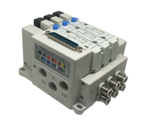 O bloco manifold com conector DB25 possui um layout do circuito de ar simples e intuitivo, proporciona redução do espaço e fiação; promove uma condução do ar comprimido de maneira segura, é compacto de fácil instalação e manutenção. Podem ser montados opcionalmente vários tipos de valvulas solenoides, com fornecimento e exaustão de ar centralizados.