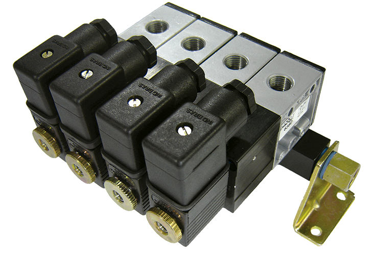 É um bloco onde são fixadas as válvulas, pelo orifício de alimentação, constituindo um conjunto compacto de válvulas, reduzindo a utilização de conexões, bem como, espaço e mão obra na instalação e manutenção. Confeccionado em alumínio e suportes em aço galvanizado, podem receber de 2 à 10 válvulas, nas bitolas de 1/8” BSP e 1/4" BSP, de 3 e 5 vias, com acionamentos piloto e solenoide. Ideais para montagens em painéis, centrais de comando ou ainda fixados diretamente na estrutura de máquinas e equipamentos, onde permitem layout otimizado.