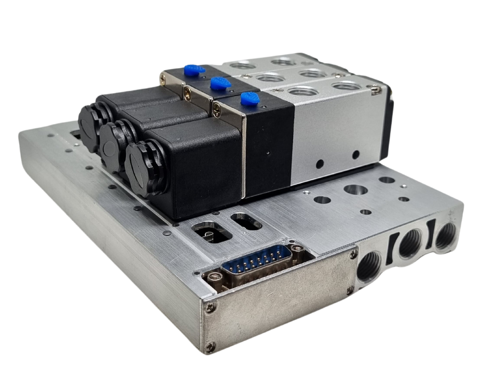 O bloco manifold com conector DB15 possui um layout do circuito de ar simples e intuitivo, proporciona redução do espaço; promove uma condução do ar comprimido de maneira segura, é compacto de fácil instalação e manutenção. Podem ser montados opcionalmente vários tipos de válvulas solenoides, com fornecimento e exaustão de ar centralizados.