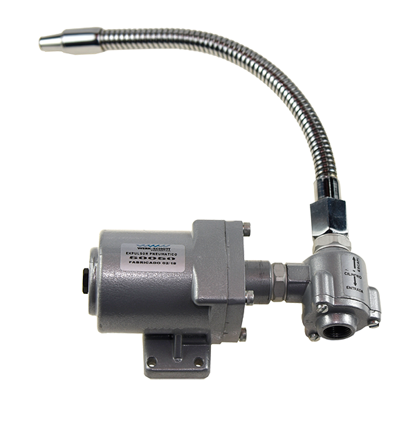 É um dispositivo pneumático composto por reservatório, válvula de escape rápido e bico direcionador flexível, que funciona com o preenchimento do reservatório com auxílio de uma válvula 3/2 vias NA e quando é esvaziado, a válvula de escape rápido permite um fluxo de ar instantâneo e veloz, criando uma força dinâmica na forma de jato direcionado. Utilizado em todas aplicações onde se necessita de um forte jato de ar, como: seleção de peças, limpeza cíclica de resíduos de usinagem, embutimentos, montagens, extração de peças, etc.