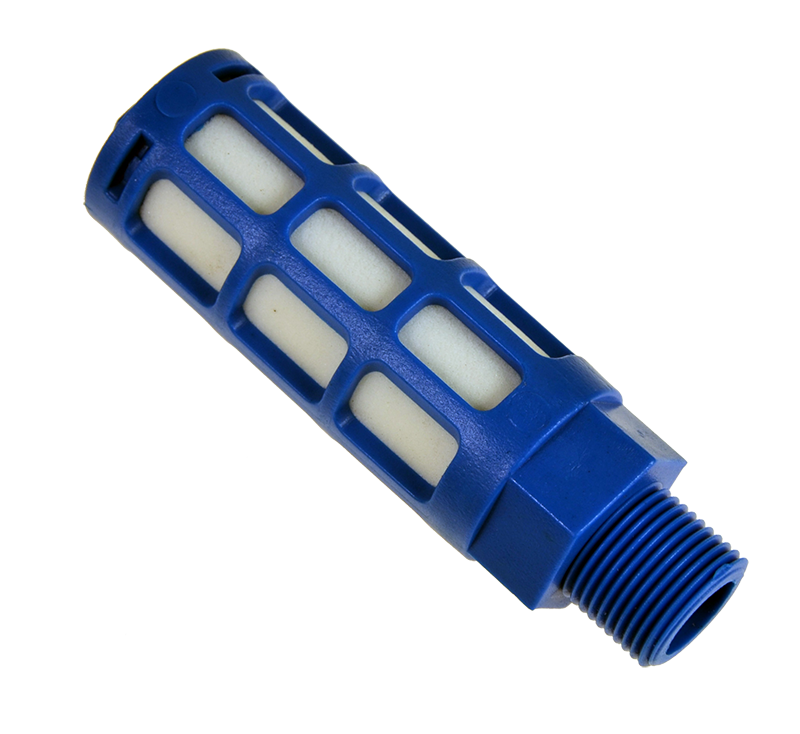 Os Silenciadores pneumáticos ou de escape de ar, são acessórios utilizados principalmente em válvulas, para reduzir ruídos causados pela exaustão do ar comprimido; aplicados também como filtros nos orifícios de ventilação de válvulas, cilindros, reservatórios, etc, para bloquear entrada de sujidades. Sua aplicação e eficiência estão diretamente relacionada com a porosidade e área efetiva de passagem, que determinam a redução do ruído e a vazão necessária, para o bom funcionamento do equipamento em que está acoplado. Construídos de diversos materiais, formatos e tamanhos, atendem as mais variadas aplicações industriais.