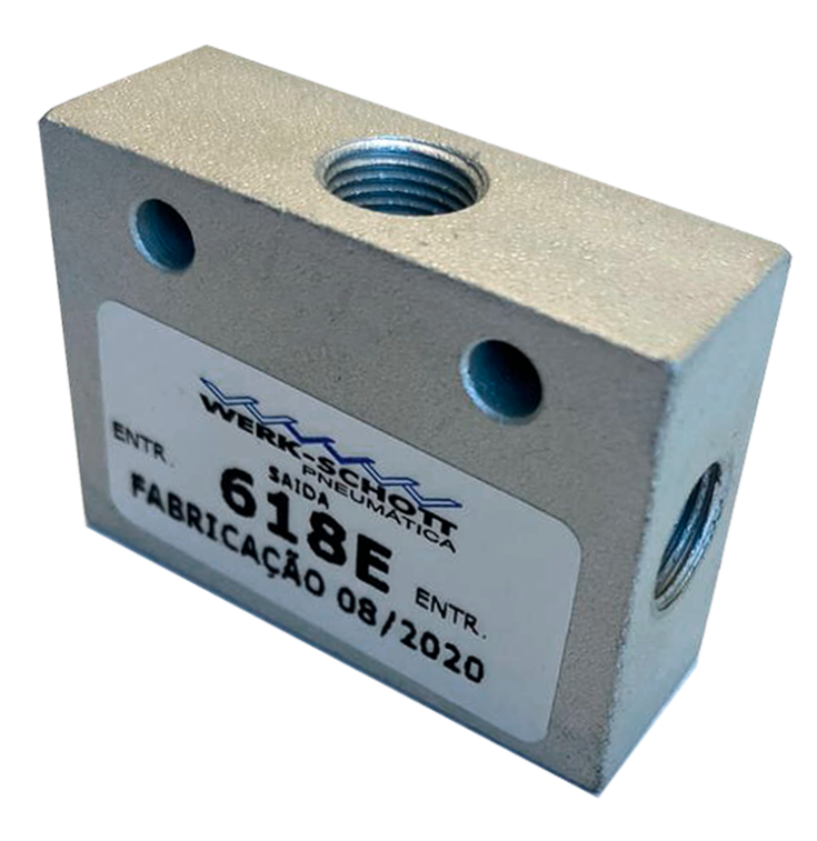 A válvula de simultaneidade, também conhecida como elemento “E”, pode ter ainda outros nomes, como válvula seletora de pressão menor, válvula de confirmação de sinais, válvula de duas pressões, etc. Aplicadas em circuitos, devida a sua função lógica “E”, para confirmar sinais de um ou mais pontos de origem, para continuidade de sequência, em máquinas e equipamentos que utilizam comando lógico pneumático. Confeccionada em alumínio e vedação em buna-N, na bitola de 1/8” BSP, operam com ar comprimido e gases neutros, nas pressões de 1 à 10 bar e temperaturas de -10 ⁰C à +60 ⁰C.
