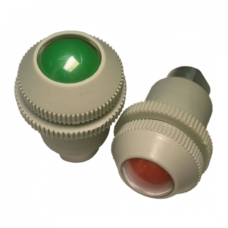 É utilizado para controle e indicação da existência de pressão na linha em que estiver instalada, obtendo assim visualização à média distância. Ao receber pressão o componente reage mecanicamente, alterando a cor inicial para outra cor final; ao desabilitar a pressão ocorre a reversão das cores. Indicado para instalação em painéis, onde é embutido em um furo e fixado por flangeamento com contra porca.