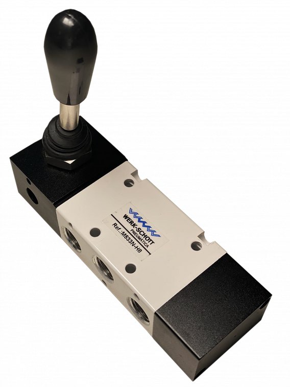 São válvulas direcionais com acionamento muscular por alavanca/trava e alavanca/mola, nas opções de 3/2 vias , 5/2 vias E 5/3 vias nas Bitolas de 1/4" BSP. Construídas em corpo e carretel em alumínio, vedações em Buna N, alavanca em aço e manopla em polímero, operam com pressões de até 10 Bar e temperaturas de -10 ⁰C à + 80 ⁰C. Utilizadas com atuação direta do operador, para emissão sinais de pilotagem à outras válvulas e comando de cilindros, de simples e dupla Ação, e outros atuadores, em painéis e circuitos de máquinas, equipamentos e dispositivos automatizados.