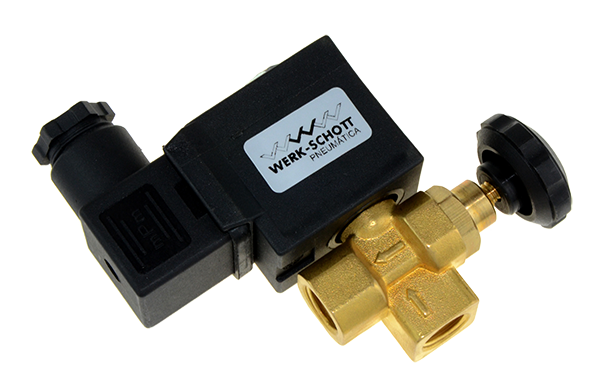 É uma válvula com Corpo de Latão monobloco e robusto, guarnecida de Vedações em NBR ou EPDM. Confeccionada em 2/2 vias NF, com rosca de 1/4" BSP e operada por Ação Direta com solenoides de 24 Vcc ou 220 Vca. Trabalham com Pressões de 0 à 10 bar, Temperaturas de 5 à 150 ⁰C e podem ser Instaladas em Qualquer Posição. Além das funções de Abertura e Fechamento, tem também o Controle de Vazão, pois possui um dispositivo Regulador de Fluxo, tornando-a uma válvula Versátil. Aplicadas em processos que utilizam vapor com dosagem, como: Esterilizadores, Banhos de Vapor, Ferros à Vapor em confecções, lavanderias, modelagens, etc.