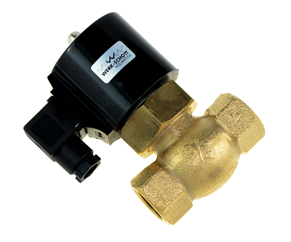 São válvulas para Abertura e Fechamento de passagens de fluidos, de 2/2 vias NF, e Acionadas Diretamente por Solenoides “ IP67 “, nas Tensões de 24 Vcc, 110 Vca ou 220 Vca. Construídas em corpo Monobloco de Bronze forjado e vedação do Êmbolo com Assento em PTFE “teflon”, são estruturadas e duráveis. Disponíveis nas bitolas: 1/2", 3/4", 1”, 1 1/2" e 2” BSP, permitem Vazão Plena. Podem ser utilizadas em Ar Comprimido, Água, Ácido Pouco Agressivos, Alcaloides e Vapor, operando nas Temperaturas de -5 ⁰C à +185 ⁰C e Pressões de 1,5 à 15 bar. Devem ser instaladas sempre na posição horizontal, com o solenoide na parte superior. Aplicadas em diversos segmentos industriais e equipamentos, como: Equipamentos Hidráulicos, Pneumáticos e de Lavanderia, Compressores, Bombas, Secadores, Irrigação, Tratamento de Água, Circuitos de Aquecimento e Refrigeração, Redes de Vapor d’Agua, etc.