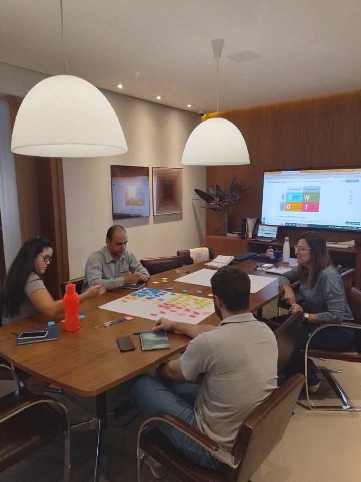 Toda quinta-feira, a equipe estratégica da Werk-Schott participa de um treinamento focado na Análise SWOT. Essa ferramenta de planejamento estratégico, também conhecida como Análise FOFA (Forças, Oportunidades, Fraquezas e Ameaças) no Brasil, é essencial para avaliar cenários e embasar a tomada de decisões.